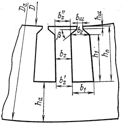 Рисунок 4.1 – Форма та розміри паза ротора Припустима ширина зубця /2, (6-77)/: