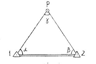 где X1, X2, Y1, Y2 – координаты исходных пунктов α, β – горизонтальные углы, измеренные на исходных пунктах. В формулах (2) обозначения соответствуют схеме, изображенной на рисунке 1.