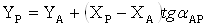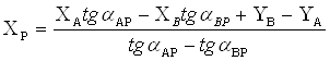 После того, как определила дирекционные углы направлений АР и ВР, вычислила координаты точки Р по формулам Гаусса: