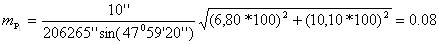 Координаты в двух вариантах различны, но расхождения не превышают 0,2 м, за окончательные значения координат принимаем их средние значения: Среднее Х=6890,005 Среднее Y=3400,585. 2.5 Оценка ожидаемой точности результатов Далее я вычислила среднюю квадратическую ошибку положения определяемого пункта: