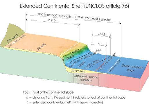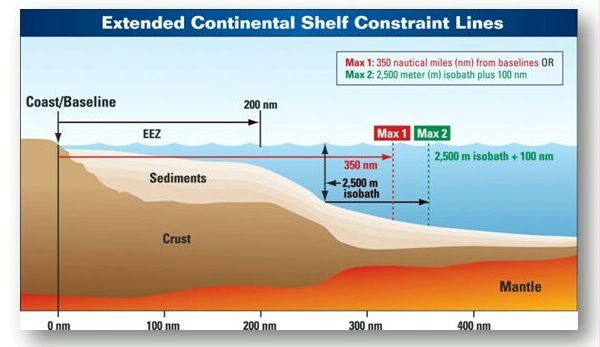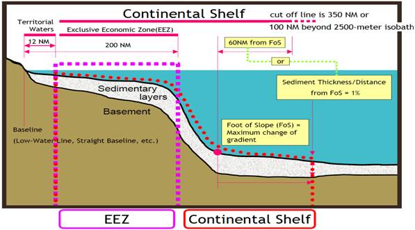 Мал. 1. Визначення меж континентального шельфу та його співвідношення з територіальними водами і виключною економічною зоною