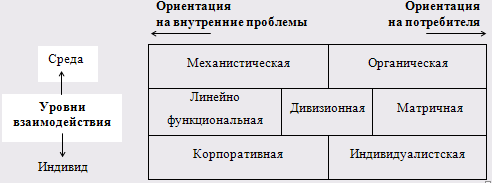Рисунок 2 – Характеристика организационной системы ОАО "ИППЖТ" Взаимодействие на уровне "организация – внешняя среда" в случае с нашим предприятием, осуществляется с помощью механистическо- органического подхода. Это говорит о том, что система частично спроектирована наподобие машинного организма с чертами органического. Характерными чертами является использование формальных правил и процедур, централизованным принятием решений и частичным участием работников в принятии решений, узко определяемой ответственностью в работе, жесткой иерархией власти в организации, но небольшим количеством уровней в организации, субъективной системой вознаграждения и отбора кадров. Свои преимущества такая организация может реализовать при условиях когда: цели и задачи известны; работа организации может делиться на отдельные операции; выполнение работы индивидом может достоверно измеряться; власть руководителя признается как законная. Данную организационную структуру нельзя назвать "идеальной бюрократией", поскольку отчасти при принятии решений работниками движет самомативация и внутреннее вознаграждение. Черты органического подхода позволяют организации лучше взаимодействовать с новым окружением, быстрее адаптироваться к изменениям внешней среды. На уровне "подразделение – подразделение" тип рассматриваемой организации традиционный. Организационная структура банка состоит из функциональных подразделений и служб, каждая из которых имеет определенные права и обязанности. Количество подразделений зависит от величины и характера деятельности предприятия. Они реализуют как оперативные, так и вспомогательные функции. К первым относятся функции, непосредственно связанные с выполнением поставленных перед предприятием задач. Тип организации по взаимодействию с человеком носит "корпоративно-индивидуалистский" характер. Данный тип организации обладает следующими характеристиками: · принятие решений происходит по принципу старшинства; · для осуществления производства происходит объединение людей по профессиональному признаку; · лояльность по отношению к организации и частично своим убеждениям; · субъектом интереса выступает как личность, так и сама организация и ее коллектив; · порой интересы производства определяются интересами воспроизводства самого человека. Его "сегодняшний" интерес превращается в "завтрашний" интерес организации; · централизованное распределение ресурсов и поиск возможных дополнительных ресурсов. 1.5 Культура организацииВнутренняя среда как бы полностью пронизывается организационной культурой, которая так же, как вышеперечисленные срезы, должна подвергаться самому серьезному изучению в процессе анализа внутренней среды организации. Организационная культура может способствовать тому, что организация выступает сильной, устойчиво выживающей в конкурентной борьбе структурой. Но может быть и так, что организационная культура ослабляет организацию, не давая ей успешно развиваться ж в том случае, если она имеет высокий технико-технологический и финансовый потенциал. Особая важность анализа организационной структуры для стратегического управления состоит в том, что она не только определяет отношения между людьми в организации, но и оказывает сильное влияние на то, как организация стр