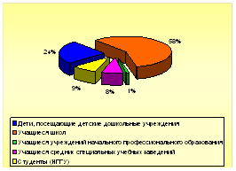 Жилищная сфера Развитие жилищно-коммунального комплекса является одним из ключевых направлений деятельности органов местного самоуправления, основная цель которого – обеспечение жизнедеятельности предприятий и учреждений, объектов социального назначения, создание комфортных условий проживания граждан. Одним из важнейших критериев качества жизни является комфортная среда проживания, которая во многом зависит от уровня развития и доступности коммунальных услуг, что обеспечивается стабильным функционированием систем жизнеобеспеченья, развитием коммунальной инфраструктуры города. Современная жилищная ситуация в городе характеризуется следующими показателями: · общая площадь жилищного фонда на 01.01.2010 г.– 1 501,24 тыс. м2 (3 586 домов); · доля ветхого и аварийного жилья в общем жилищного фонда – 6,6 %. · средняя жилищная обеспеченность на 01.01.2010 г. – 19,8 м2/чел.; · средняя плотность населения – от 30 чел./га для индивидуальной жилой застройки и от 100 до 130 чел./га для многоквартирной жилой застройки; · средняя плотность жилищного фонда для многоквартирной жилой застройки – 2 580 м2 на 1 га селитебной территории, для индивидуальной – от 600 до 1300 м2 на 1 га; · распределение по типу застройки: 1-квартирные до 3 этажей – 15,6%; 2-квартирные до 3 этажей – 3,0%; многоквартирные – 73,9%; общежития до 5 этажей – 7,4%. В 2009 году произведен капитальный ремонт 9 домов, обшиты, утеплены и сменены кровли на 10 домах, сменена кровля на 2 домах, произведена замена фасадов 3 домов, чердачного перекрытия 1 дома, покраска фасадов 11 домов, отремонтировано 274 муниципальной квартиры. Образование Сеть учреждений дошкольного образования города представлена 21 учреждениями, что составляет 33,9% от всего числа образовательных учреждений города. По состоянию на 1 января 2010 года по предварительным данным в городе насчитывается 9287 детей в возрасте от 0 до 7 лет. Из них 7477 детей в возрасте от 1 до 6 лет являются потенциальными потребителями дошкольных образовательных услуг. В городе действуют программы «Развитие материально-технической базы социальной сферы Ханты-Мансийского автономного округа – Югры» на 2006-2010 годы», «Развитие материально-технической базы дошкольных образовательных учреждений в Ханты-Мансийском автономном округе – Югра» на 2007-2010 годы. Так например, за 2007-2009 г.г. введены в эксплуатацию 3 детских сада в общей сложности на 900 мест. Удовлетворение потребностей населения в коррекционном образовании в 2009 году составило 35%. Увеличивается количество групп компенсирующего вида (с нарушением речи, группы присмотра и оздоровления - 10 групп, охват - 188 человек). В рамках целевой программы «Дети Югры», подпрограммы «Здоровый ребенок» в МДОУ внедряются оздоровительные технологии, поставляется соответствующее оборудование. Сеть учреждений школьного образования города представлена 14 учреждениями (школы, гимназии), что составляет 22,6% от всего числа образовательных учреждений города. Данные учреждения реализуют программы начального, общего, среднего (полного) образования. Все общеобразовательные учреждения расположены в благоустроенных зданиях. Обучение организовано по очной, очно-заочной, индивидуальной формам, в форме экстерната, семейного и дистанционного обучения, на основе индивидуальных учебных планов. Численность учащихся дневной формы обучения за три последних учебн