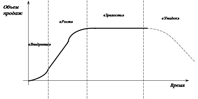 2.3 Жизненный цикл СГД. Жизненный цикл товара – процесс развития продаж товара и получения прибылей, состоящий из 4-х этапов. Каждому товару, запущенному в коммерческое производство, присущ свой жизненный цикл.