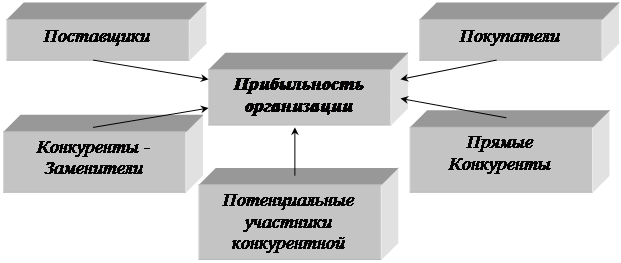 6. Описание конкурентной среды. (модель Майкла Портера) Для описания конкурентной среды возьмём за основу модель Майкла Портера, который считал, что на прибыльность организации оказывают влияние пять основных факторов: