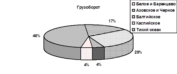 вес морей в общем морском грузообороте в 1913 году составлял1 (%): Петербург был самым крупным по грузообороту и наиболее благоустроенным портом России. Его грузооборот в 1913 году составлял 7,2 млн. т, в том числе по вывозу - 2,6 млн. т, по ввозу - 4,1 млн. и по каботажу - 0,5 млн. т. 70 % импорта, поступавшего в Петербургский порт, приходилось на английский уголь. Вторым по грузообороту портом России была Одесса. Из других по размерам грузооборота выделялись Николаев, Ростов, Мариуполь (Жданов),Новороссийск, Рига, Архангельск и Владивосток. Общий грузооборот морских портов России в 1913 году в дореволю- ционных границах составлял 41 млн. т, в том числе малый каботаж - 11,8 млн. т, большой каботаж1 - 0,6 млн., экспорт - 19,3 млн., импорт- 9,3 млн.т2 . В морском экспорте преобладали грузы : хлебные - 52,8%; лесные - 21,1; руда - 10,5; нефть - 5,6%. В импорте 65,5% составлял каменный уголь. Внешнеторговые грузы перевозились преимущественно на иностранных судах . Средняя дальность перевозки 1 т груза составляла 726 миль (1335 км). Низкий технический уровень оборудования русских портов был причиной малой их производительности. Около 70% торгового флота в 1913 году составляли парусные суда . В 1916 году внешнеторговый морской грузооборот России занимал пятое место в мире. С первых же лет Советской власти развитию морского транспорта было уделено большое внимание. Морской флот сильно пострадал в годы гражданской войны и интервенции. Советское государство закупало суда за границей и строило новые на своих верфях. Грузоподъемность морского торгового флота к началу 1937 года составила 1 250 тыс. рег. т (1913 г. - 893 тыс. рег. т). массовые грузы для вывоза морем за границу”[1]. Из северных портов к таковым были отнесены Ленинград и Мурманск, из южных - Мариуполь, Рос- тов-на-Дону, Новороссийск и Махачкала. Началось строительство новых сооружений, оснащение причалов и складских помещений. В довоенное время были построены механизированная Лесная гавань в Ленинградском порту, мощные элеваторы с глубоководными причалами в Николаеве, Херсоне, Мариуполе, переоборудованы элеваторы в других крупных портах. В ряде крупных портов (Ленинград,Одесса, Новороссийск, Туапсе, Владивосток, Сухуми и другие) сооружены железобетонные конструкции глубоководных пирсов. К сороковым годам были реконструированы почти все морские порты страны и построено несколько новых. Быстрое развитие