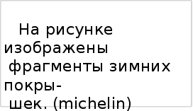 Понемногу изменятся и внешний вид покрышек, например, если раньше модель M + S ( знак сокращения, указывающий, что шина предназначена для движения по грязным и заснеженным дорогам ) , можно было узнать по глубоко расчленённому рисунку протектора, то сегодня её не отличить от обычной летней покрышки.Сейчас главная особенность зимних шин в ином качестве резины, изготовленной из морозостойкой смеси, а так же в большой поверхности профиля и в тонком профилировании так называемых дисков. Резина зимних шин мягче, чем у летних, и остается такой же в трескучий мороз. Щелевидные прорези протектора улучшают сцепление с дорогой в зимних условиях, а следовательно улучшают тяговое усилие и эффект торможения В качестве недостатков зимних шин относительно летних можно назвать повышенный износ на твёрдых, сухих покрытиях, шумность и вибронагруженность. Интересную модель зимней шины выпустила фирма Nokian. На покрышках была использована технология цифровых индикаторов степени износа. В центральной части протектора расположен ряд цифр от 2 до 8. В зависимос-ти от степени износа шины на поверхности появляется соответствующая цифра, которая указывает остаточную глубину протектора в миллиметрах.