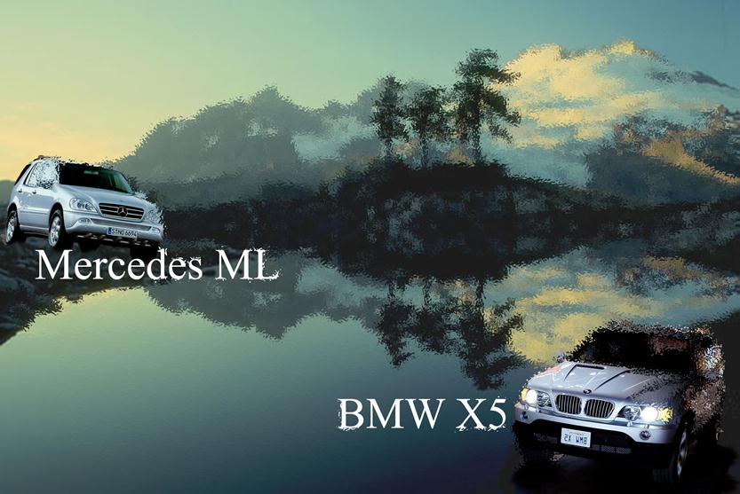 занимается и по сей день. Сначала машины производились по лицензии Austin Seven, но в 1932 году появилась первая машина собственной разработки: 320. Четыре года спустя - сенсация - компания представила быстрый спортивный автомобиль 328, успех которого даже превзошел успех знаменитой LeMans. После окончания войны завод Eisenach (в то время он находился в Восточной Германии) оказался в контролируемой русскими зоне и продолжил производство довоенных моделей, которые теперь стали называться EMW. Таким образом, возобновление производства автомобилей представляло известные трудности. В середине пятидесятых годов BMW работало в двух направлениях: компания выпускала карликовый автомобиль Isetta и большой шестицилиндровый 501. В семидесятые годы была заложена база сегодняшних моделей, среди которых наибольшую популярность снискала 3 серия. В 1994 году BMW приобрело концерн Rover и удвоило таким образом свою производственную мощность. В год BMW выпускает под собственным именем около 570000 автомобилей. И добавим: популярность этой фирмы на мировом рынке сопоставима сегодня лишь, пожалуй, с одним звездным концерном Mercedes-Benz, с которым она успешно конкурирует. Эмблема. Аббревиатура BMW расшифровывается как Bayerlsche Motoren Werke – «Баварский моторостроительный завод». Фирма была основана в 1916 году в Мюнхене и сначала занималась производством исключительно авиадвигателей. Об этом и по сей день напоминает эмблема: бело-голубые сектора символизируют небо, просвечивающее сквозь ореол вращающегося пропеллера. В 1923 году компания выпустила свой первый мотоцикл, а производством легковых автомобилей занялась в 1932 году. 4 Общие характеристики Mercedes ML & BMW X5 Внедорожник Mercedes M-класса (ныне получивший индекс ML) появился на рынке в 1997 году - это была модель ML320. Компания раскачивалась довольно долго, но уж больно привлекательным казался сектор американского рынка, в который должен был попасть этот автомобиль. Соперник от BMW - "спортивно-активный" X5 - припозднился еще сильнее, первые машины сошли с конвейера только в сентябре 1999 года. (Напомню, что и та, и другая модель выпускается в США.) Возможность сравнить столь ярких соперников появилась тогда, когда удалось подобрать пару BMW X5 – автомобиль с соответствующим объемом двигателя ML430. В первую очередь хочу обратить внимание на внешние данные автомобиля. Когда появилась Х5, то ее стилистическая концепция удивила: нельзя сказать, что это чистокровный внедорожник, это почти легковой авто, только покрупнее. Машина получилась яркой и динамичной - в спортивных традициях марки (на мой взгляд, Х5 на сегодняшний день - одна из лучших с точки зрения дизайна моделей BMW). Внешность Mercedes M-класса более пресная, особенно если лишить автомобиль косметических аксессуаров - "тюнингового" обвеса, "кенгурятника" и опционных колесных дисков. Он выше и массивнее, формами ближе к традиционному внедорожнику. Видимо, маркетологи DaimlerChrysler посчитали, что радикализм отпугнет потенциальных покупателей, в большинстве своем достаточно консервативных. И, надо сказать, не ошиблись. "Консерваторов" набралось достаточно, компания недавно объявила о планируемом удвоении мощности завода в Алабаме - до 160.000 автомобилей в год. Следующая стадия сравнения – двигатели. Мощность 4,4 л мотора BMW X5 составляет 286 л.с. (5400 об./мин.), у Mercedes ML430 - 272 л.с. (5500 об./мин.). Крутящий момент, соответственно, 44