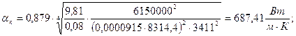 Критерий Нюсельта: Nu = 0,023ּ1826929,5280,8ּ0,30880,4 = 774,04; Коэффициент конвективной теплоотдачи: