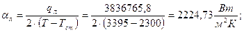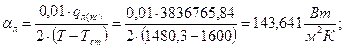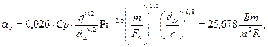 Радиус кривизны: r = dа/2 = 0,5188/2 = 0,2594 м.; Коэффициент конвективной теплоотдачи: