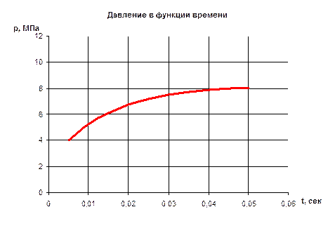 λМ = 16,9 Коэффициент теплопроводности: аМ = 0,00000642 м2/сек; Толщина днища: δдн = 0,004 м.; Допустимая температура стенки: Тg = 800 К; Начальная температура материала: Т = 293,15 К; Материал теплозащитного покрытия: Углерод (пирографит); Плотность: ρп = 2200 кг/м3; Теплоемкость