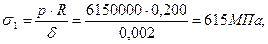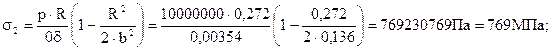8.Расчет на прочность камеры сгорания. Свойство материала корпуса (обечайки): Стеклопластик: σв = 950 МПа; Е = 39,2ּ103 МПа; Днища: Титановый сплав: σв = 1000 МПа; Толщина обечайки: δоб = 0,002 м.; Длина: Lоб. = 1,229 м.; Диаметр камеры сгорания: Dк = 0,5443 м.; Rк = 0,200 м.; Толщина эллиптического днища: δдн. = 0,002 м.; Относительная величина вылета крышки: m= 0,5; Величина вылета крышки: b = 0,099 м.; Напряжения от внутренних сил: Для обечайки:
