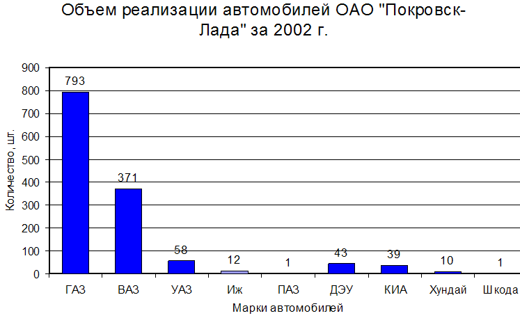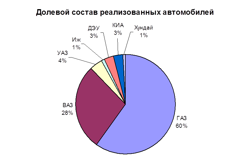 2.2. ОАО «Покровск-Лада» на автомобильном рынке области. Акционерное общество «Покровск-Лада» расположено в г. Энгельсе Саратовской области на левом берегу реки Волга в центре крупного промышленного региона. На севере Саратовская область граничит с Самарской, Ульяновской и Пензенской областями, на юге – с Волгоградской и на востоке – с республикой Казахстан и Оренбургской областью. Саратовская область располагает мощным научно-техническим и агропромышленным потенциалом центральной России. Промышленность области – это более 2000 крупных и средних предприятий с развитым приборостроением, электроникой, самолетостроением, дизелестроением, нефтегазодобычей и переработкой, химической промышленностью и индустрией. Область является основным производителем троллейбусов в России, ряд заводов являются производителями комплектующих для отечественной автомобильной промышленности. Автомобильный рынок Саратовской области насчитывает более 320 тыс. единиц легковых автомобилей. ОАО «Покровск-Лада» является одним из крупных предприятий в области по торговле и сервисному обслуживанию легковых автомобилей. Основным направлением деятельности являются: · продажа автомобилей «ВАЗ», «ГАЗ», «ДЭУ», «КИА», «Ока» и их послепродажное обслуживание; · предоставление комплекса услуг по специализированному сервисному обслуживанию автомобилей «ВАЗ», «ДЭУ», «ГАЗ», «ФИАТ», «Шкода», «КИА», «Ока»; · продажа авто принадлежностей и запасных частей. ОАО «Покровск-Лада» имеет большой опыт эффективной работы на региональном рынке. Предприятие тесно сотрудничает со многими предприятиями России, некоторые из них являются постоянными поставщиками. Выбор и поиск поставщиков происходит при помощи рекламы, посещений заводов-изготовителей компетентными представителями предприятия, рекламных проспектов, присылаемых поставщиками. Самыми крупными являются следующие поставщики. г. Тольятти: · ООО «Правит» - производит оптовую торговлю запчастями к автомобилям ВАЗ; · ООО «Автотор» - оптовая торговля агрегатами и узлами ВАЗ; · Ч.П. «Калмыков» - оптово-розничная торговля автомобилями ВАЗ; · ЗАО «А.М.Компани» - производит оптовую торговлю автомобилями ВАЗ, а также агрегатами и кузовами к ним; · ООО «Берн» - оптовая торговля автомобилями. г. Нижний Новгород: · ПФ «Автозапчасть» - оптовая поставка запчастей к автомобилям ГАЗ; · фирма «ТСС» - запчасти к автомобилям ГАЗ, «Волга», «Газель»; · ОАО «Заволжский моторный завод» - двигатели и запчасти к автомашинам ГАЗ; · ОАО «ГАЗ» ТСС – поставка автомобилей «Волга», «Газель». г. Серпухов: · ЗАО «СеАЗ» - производитель автомобилей «Ока», производит поставку запчастей к автомашинам и их гарантийное обслуживание. г. Москва: · ООО «Бавария» - осуществляет срочную поставку запчастей «ДЭУ», «Хундай», «КИА»; · ЗАО «ИнКор-Моторз» - оптовая торговля запчастями «ДЭУ»; · ООО «Итал-Авто» - производит торговлю запчастями автомобилей «Fiat», «Альфа-Ромео»; · ООО «Колор-Групп» - поставка средств коррозионной обработки, растворителей, автокосметики. г. Ярославль: · завод «Победа Рабочих» - осуществляет поставку грунтовочных средств, лакокрасок, автоэмали. Работа с поставщиками осуществляется только после составления и подписания договора на взаимовыгодных условиях. Расчет за поставленную продукцию производится по безналичному расчету