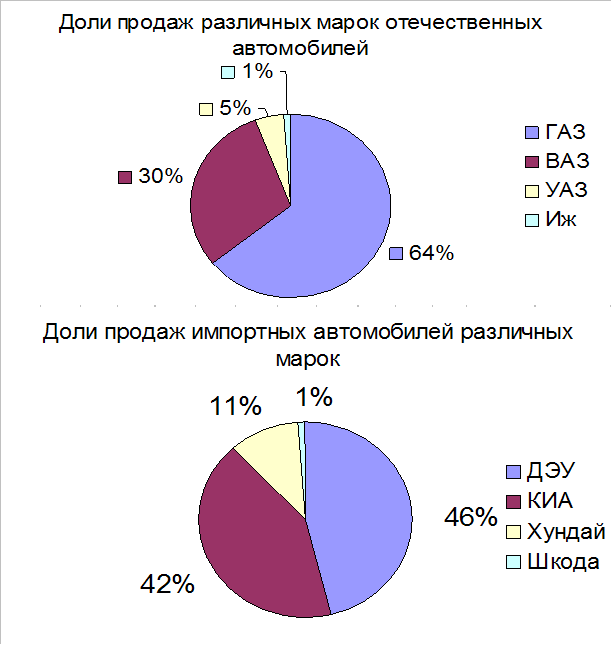 Объем продаж автомобилей марки KИA через российскую дилерскую сеть в сентябре составил 553 единицы (включая прямые поставки из Кореи). Наибольшей популярностью в России пользуется модель КИА РИО, реализованная за первые три квартала 2002г. В количестве 1310 экземпляров, в том числе в сентябре – 212. Второе место по объему продаж удерживает Kia Sportage: с января по сентябрь было продано 1067 экземпляров этого автомобиля, а в сентябре – 165 экземпляров. За первые три квартала 2002г. Официальные дилеры Nissan в России продали 6054 автомобиля – на 14,5% больше, чем за весь предыдущий год. Это достижение позволило компании Nissan выйти на 3-е место по объему продаж на российском рынке, пропустив вперед лишь Daewoo и Skoda. В сентябре Nissan реализовал 645 автомобилей, что почти на 20% больше, чем в сентябре 2001г. Лидером продаж в этом месяце оставалась Primera. С января по сентябрь 2002г. Через сеть официальных дилеров Citroen в России было продано 1472 автомобиля. В сентябре дилеры компании реализовали 174 автомобиля. Наибольшим спросом в сентябре, как и в предыдущие месяцы, пользовался Citroen C5, объем реализации которого составил 62 экземпляра. Второе место по популярности у российских покупателей среди моделей этой французской компании занимает Berlingo, проданный в количестве 46 экземпляров. В январе – августе 2002г. В России произведено 847617 автомобилей (109973 грузовых и 695786 легковых). Годом ранее за тот же период было выпущено 812836 машин. За первые 9 месяцев 2002 г. Продажи новых автомобилей Mitsubishi в России через сеть официальных дилеров компании возросли на 35% по сравнению с аналогичным периодом прошлого года и составили 5592 единиц. Традиционно наиболее успешно шла продажа Carisma и внедорожников Pajero, Pajero Sport и L200. спрос на Carisma увеличился на 59%, а на внедорожники – 27%. Продажа автомобилей Ford в России через сеть официальных дилеров в III квартале 2002г. Составили 1210 автомобилей. Лидирующее положение по объему продаж занимает Ford Focus, 451 автомобиль (+37,2%). На 2-ом месте по популярности у российских покупателей Ford Mondeo, объем продаж которого составил 366 экземпляров (+30,2%). Всего с января по сентябрь 2002г. Было продано 4027 автомобилей Ford – на 1387 автомобилей больше, чем за тот же период 2002г. Компания Peugeot реализовала в России за 9 месяцев 5526 автомобилей (в 2001г. – 3005 машин). Лидеры продаж – Peugeot 307 (2023 автомобиля) и Peugeot 206 (1782 автомобиля). Volvo реализовала в России за первые 9 месяцев 2002г .1750 автомобилей (в 2001г. – 1661 автомобиль). Наибольшей популярностью пользовалась Volvo S80. Первые 9 месяцев этого года стали самыми успешными за всю историю деятельности BMW в России. Объем продаж автомобилей по сравнению с аналогичным периодом прошлого года увеличился на 42,3%, до 2848 единиц, что превышает итоговые показатели 2001г. В целом. Количество реализованных BMW 7-ой серии (429 экземпляров) значительно превзошло первоначально прогнозируемые цифры. Среди «баварцев» на российском рынке лидирует BMW 5-ой серии, реализованный в количестве 941 экземпляра. Лишь немного отстает по объемам продаж BMW 3-ей серии – 937 экземпляров. Отличную динамику роста продаж продемонстрировали MINI: всего за 3 месяца, прошедшие с начала продаж на российском рынке, было реализовано 57 автомобилей. ООО «Тойота Мотор» объявило результаты продаж Toyota и Lexus на территории Европейской части России через официальных дилеров за 9 месяцев 2002г. По сравнению с аналогичным периодом 2001г. Продажи Toyota во