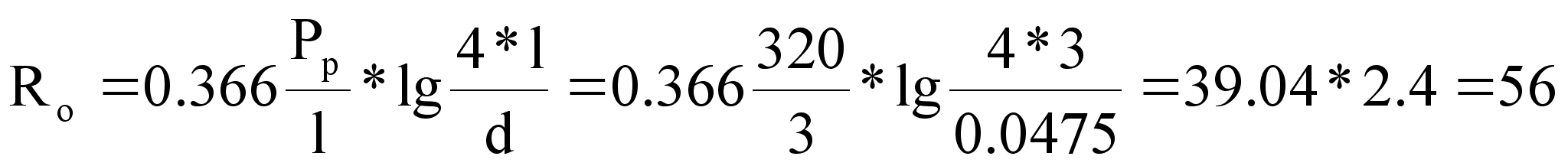 где - удельное электрическое сопротивление грунта, =200 Ом*м. К2 – климатический коэффициент, К2 = 1,6 Рр= 1,6*200=320 Ом*м ( ) 4. Для заземления используется вертикальные заземлителя выполненные из угловой стали 50*50*5 мм, длиной 3м, забитых вровень с поверхностью земли /19/. Эквивалентный диаметр уголка: dy = 0.95*50=0.0475 м ( ) Сопротивление вертикального одиночного заземлителя составит /19/: