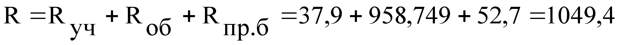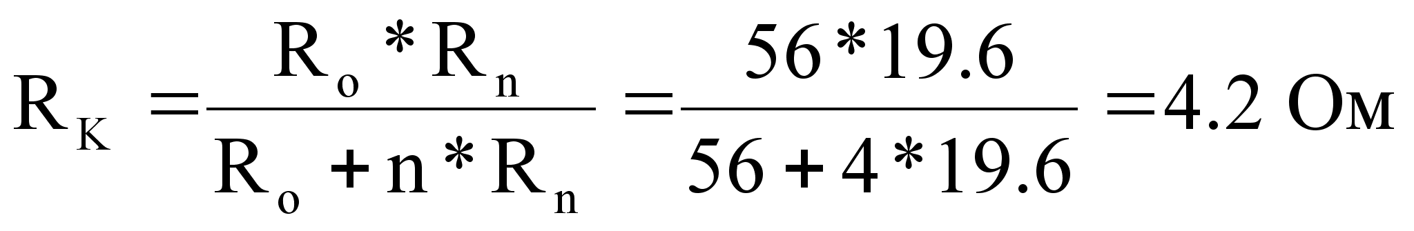 Общее сопротивление заземление заземляющего устройства RK определим по формуле /17/: