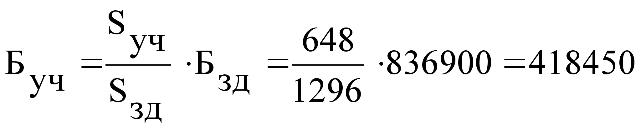 Балансовую стоимость помещения участка находим из выражения /1/: