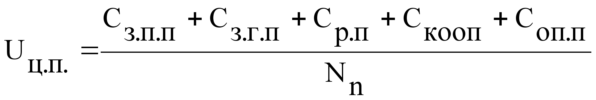 7.2 Расчет общего объема ремонтно-обслуживающих работ На участке узкоспециализированное ремонтное производство, т.е. ремонтная продукция представлена одним видом работ – ремонт комбайнов. Годовой объем работ выражается в физических единицах /28/. (w=100 шт). 7.3 Исчисление себестоимости единицы ремонтной продукции Исходя из общего объема выполненных ремонтных работ и величины материально-денежных затрат подсчитывается себестоимость единицы ремонтной продукции, т.е. одного физического ремонта /28/. 7.3.1 Зарплата производственных рабочих находится по выражению /18/: