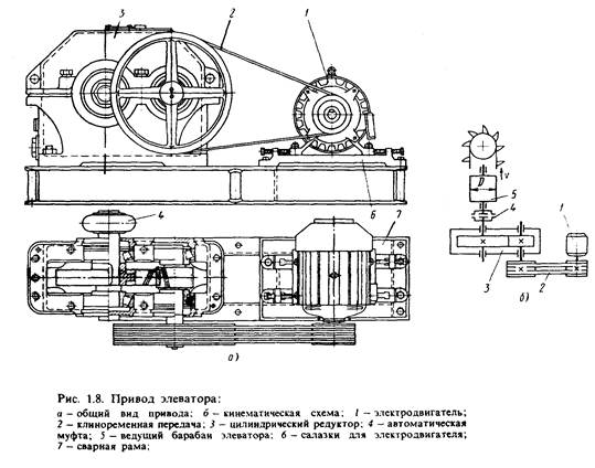 Реферат: Привод элеватора. Компоновка. СБ чертеж цилиндрического редуктора. Деталировка. РПЗРеферат: Привод элеватора. Компоновка. СБ чертеж цилиндрического редуктора. Деталировка. РПЗОглавлениеОглавление.................................................................................................... 2 ТЕХНИЧЕСКОЕ ЗАДАНИЕ......................................................................... 3 Основная часть............................................................................................. 4 1. Выбор электродвигателя, кинематический расчет привода....... 4 1.1 Необходимая мощность электродвигателя.............................. 4 1.2 Выбор электродвигателя, передаточное отношение редуктора, частоты вращения валов.................................................................................... 4 2. Расчет редукторной передачи.......................................................... 5 2.1 Мощности, передаваемые валами, крутящие моменты......... 5 2.2 Расчет цилиндрической передачи.............................................. 5 3. Расчет валов, подбор подшипников................................................. 9 3.1 Предварительный расчет валов................................................. 9 3.2. Эскизная компоновка валов........................................................ 9 3.3 Проверочный расчет валов....................................................... 10 3.4 Расчет подшипников.................................................................... 14 4 Подбор и проверка шпонок............................................................... 16 5 Подбор муфты..................................................................................... 17 6. Подбор смазки редуктора................................................................ 17 Список литературы.................................................................................... 18 ТЕХНИЧЕСКОЕ ЗАДАНИЕ Спроектировать привод элеватора