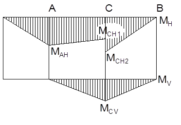 3.3.2 Определяем реакции опор и изгибающие моменты быстроходного вала Реакции опор: RAH = (Fp(a+b+c)+Fr1*c-Fa1*0.5 d1)/(b+c) = =(1671(0,094+0,061+0,061)+1380*0,061-747,64*0,5*0,062)/(0,061+0,061) = 3459 Н RAV = Ft1*c/(b+c) = 3716*0,061/(0,061+0,061) = 1858 Н RBH = (Fp*a-Fr1*b-Fa1*0,5 d1)/(b+c) = = (1671*0,094-1380*0,061-747,64*0,5*0,062)/(0,061+0,061) = 407,91Н RBV = Ft1*b/(b+c) = 3716*0,061/(0,061+0,061) = 1858 Н RBr = Fa1 = 747,64 Н Радиальное давление на подшипники: FrA = (RAH2 + RAV2)0,5 = ( 34592 + 18582)0,5 = 3926 Н FrB = (RВH2 + RВV2)0,5 = ( 407,912 + 18582)0,5 = 1902 Н Изгибающие моменты: МАН = Fp*a = 1671* 0,094 = 157,09 Нм МСН1 = RBH*c = 407,91* 0,061 = 24,88 Нм МСН2 = RBH*c + Fa*0,5*d1 =407,91*0,061+747,64*0,5*0,062 = 48,05 Нм МСV = RBV*c = 1858*0,061 = 113,35 Нм Эпюры изгибающих моментов в горизонтальной и вертикальной плоскостях: