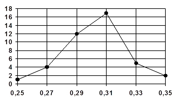 L2= 25 27 27 27 27 29 29 29 29 29 29 29 29 29 29 29 29 31 31 31 31 31 31 31 31 31 L2= 31 31 31 31 31 31 31 31 33 33 33 33 33 35 X= 35.0 Y= 25.0 L4= 26,0 L4= 28,0 L4= 30,0 L4= 32,0 L4= 34,0 L4= 36,0 M1= 5.00 12.00 17.00 5.00 2.00 0.00 Средний ресурс L= 0.294e+02 D2= 0.40e+01 Средне. квадратичн. откл. s= 0.219e+01 Коэф. вариации V= 0.745 Выполняется нормальный закон Значение функции E= 0.0558598 0.1500940 0.1748801 0.883550 0.193569 0,00183 Из табл. 2.2 видно, что средняя трудоемкость ЕО составляет L = 0,294 чел-ч, а среднеквадратическое отклонение s= 0,0219 чел-ч. Таким образом, около 70,7 % ЕО имеет трудоемкость от 0,2721 до 0,3159. Так как нормативная трудоемкость ЕО составляет 0,3 чел-ч (без поправочных коэффициентов), то данные результаты можно признать соответствующими нормативу, хотя и наблюдается некоторое увеличение трудоемкости ЕО. 2.3 Исследование вероятности возникновения неисправностей и состава работ по сопутствующему текущему ремонтуДля оценки математического ожидания возникновения неисправности служит доверительный интервал, показывающий наибольшую и наименьшую вероятность возникновения той или иной неисправности: