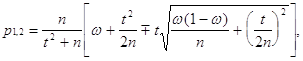 где p1, p2 - верхняя и нижняя границы интервала, определяемые по формуле: