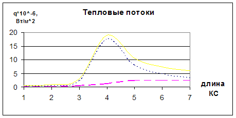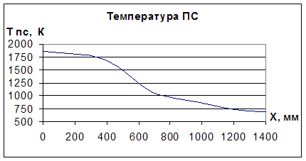 в КС Рос=8,8 МПа. Коэф-т избытка окислителя в пристеночном слое Выбираем в качестве материала стенки сплав БрХ08 и задаемся распределением температуры стенки по длине камеры. Распределение по длине выбираем линейное. В сверхзуковом сопле распределение температуры задаем двумя линейными зависимостями. Значения Тст.г. равны: в минимальном сечении 680 К, на срезе сопла 450 К, В камере сгорания 580 К.