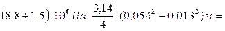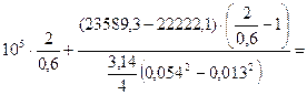 Т.к. 4,76>4,44 , то форсунка окислителя будет работать с расчетным коэффициентом расхода. 6. Примем число входных отверстий i=4 . Rвх/ rc= 1,85; следовательно R вх= 1,85rc =10,52 мм Находим 7. Определяем число Рейнольдса Reвх