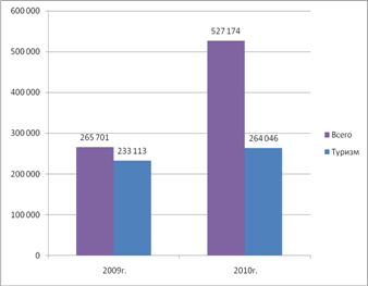 2009 года почти в 2 раза. В процентном соотношении количество туристов, приезжих