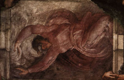 “Видение пророка Иезеркиля” “Адам и Ева” Микеланджело Буонарроти МИКЕЛАНДЖЕЛО Буонарроти (Michelangelo Buonarroti) (1475-1564), итальянский скульптор, живописец, архитектор, поэт. С наибольшей силой выразил глубоко человечные, полные героического пафоса идеалы Высокого Возрождения, а также трагическое ощущение кризиса гуманистического миропонимания в период Позднего Возрождения . Монументальность, пластичность и драматизм образов, преклонение перед человеческой красотой проявились уже в ранних произведениях («Оплакивание Христа», ок. 1497-98; «Давид», 1501-04; картон «Битва при Кашине», 1504-06). Роспись свода Сикстинской капеллы в Ватикане (1508-12), статуя «Моисей» (1515-16) утверждают физическую и духовную красоту человека, его безграничные творческие возможности. Трагические ноты, вызванные кризисом ренессансных идеалов, звучат в ансамбле Новой сакристии церкви Сан-Лоренцо во Флоренции (1520-34), во фреске «Страшный суд» (1536-41) на алтарной стене Сикстинской капеллы, в поздних вариантах «Оплакивания Христа» (ок. 1550-55) и др. В архитектуре Микеланджело господствуют пластическое начало, динамический контраст масс (библиотека Лауренциана во Флоренции, 1523-34). С 1546 руководил строительством собора св. Петра, созданием ансамбля Капитолия в Риме. Поэзия Микеланджело отличается глубиной мысли и высоким трагизмом. МИКЕЛАНДЖЕЛО Буонарроти (Michelangelo Buonarroti) (1475, Капрезе — 1564, Рим), итальянский скульптор, живописец, архитектор, поэт, один из ведущих мастеров Высокого Возрождения. Первоначальное образование получил в латинской школе во Флоренции. Учился живописи у Гирландайо, скульптуре у Бертольдо ди Джованни в основанной Лоренцо Медичи художественной школе в Садах Медичи. Копировал фрески Джотто и Мазаччо, изучал скульптуру Донателло, а в 1494 в Болонье познакомился с работами Якопо делла Кверча. В доме Лоренцо, где Микеланджело прожил два года, он познакомился с философией неоплатонизма, оказавшей в дальнейшем сильное влияние на его миропонимание и творчество. Тяготение к монументальной укрупненности форм сказалось уже в первых его работах — рельефах «Мадонна у лестницы» (ок. 1491, Каза Буонарроти, Флоренция) и «Битва кентавров» (ок. 1492, там же). Первый римский период (1496-1501) В Риме Микеланджело продолжил начатое в Садах Медичи изучение античной скульптуры, ставшей одним из источников его богатой пластики. К первому римскому периоду относятся антикизированная статуя Вакха (ок. 1496, Национальный музей, Флоренция) и скульптурная группа «Пьета» (ок. 1498-99), свидетельствующая о начале творческой зрелости мастера. Флорентийский период (1501-06). Статуя Давида Вернувшись в 1501 во Флоренцию, Микеланджело получил от правительства республики заказ на создание 5,5-метровой статуи Давида (1501-04, Академия, Флоренция). Установленная на главной площади Флоренции рядом с ратушей Палаццо Веккио (ныне заменена копией), она должна была стать символом свободы республики. Микеланджело изобразил Давида не в виде хрупкого подростка, попирающего отрубленную голову Голиафа, как это делали мастера 15 в., а как прекрасного, атлетически сложенного гиганта в момент перед сражением, полного уверенности и грозной силы (современники называли ее terribilita — устрашающая). Одновременно в 1501-05 Микеланджело работал над другим заказом правительства — картоном к фреске «Битва при Кашине», которая вместе с росписью