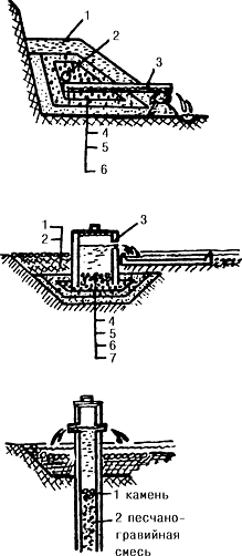называемым <обратным фильтром>, т.е. сначала кладут слой песка, а потом