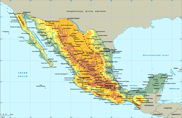 Реферат: Комплексная экономико-географическая характеристика МексикиРеферат: Комплексная экономико-географическая характеристика МексикиСодержание. Вступление ……………………………………………………………. 2Карта, флаг, герб государства ……………………………………….. 2Основные сведения о стране ………………………………………… 3Исторический очерк ………………………………………………….. 3Природные условия и ресурсы ………………………………………. 4Население……………………………………………………………… 8Экономика и политика……………………………………………….. 9 Промышленность…………………………………………………….. 14 Сельское хозяйство…………………………………………………… 18Транспорт и торговля………………………………………………… 19Непроизводственная сфера…………………………………………... 21 Культура страны……………………………………………………… 23Список литературы…………………………………………………… 32Приложение…………………………………………………………….33 Вступление. Что обычно люди представляют себе, когда слышат слово ''Мексика''? мужчин в пончо и широкополых шляпах, погони, перестрелки, переходы через границу – всё то, что представляют собой боевики и вестерны. Или же нереальную жизнь ''мыльных опер''. А между тем Мексика это страна с интересной историей, богатейшим культурным наследием, со сложной и неоднозначно развивающейся экономикой и политикой; со своими особыми традициями. Тем более что у нашей страны начинается налаживание торгово-экономических связей с Мексикой. Мы выбрали для нашей работы именно эту замечательную страну, чтобы самим лучше узнать её и сломать устоявшиеся стереотипы у других.