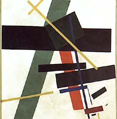 Рассказывают, что Малевич, написав "Черный квадрат", долгое время говорил всем, что не может ни есть, ни спать. И сам не понимает, что такое сделал. И действительно, эта картина - результат, видимо, какой-то сложной работы. Когда мы смотрим на черный квадрат, то под трещинами видим нижние красочные слои - розовый, зеленый, по-видимому, была некая цветовая композиция, признанная в какой-то момент несостоявшейся и записанная черным квадратом. Художник впоследствии много думал о черном квадрате, писал теоретические работы, связывал его с космическим сознанием. Творческая жизнь художника складывалась нелегко. Он вырос в провинции и до 12-13 лет не знал, что существуют профессиональные художники. Его отец был инженером, работавшим на сахарном заводе. Семья Малевича жила вдали от культурных центров, рядом со свекловичными плантациями на Украине. В детстве будущего художника окружало в основном крестьянское искусство. Ему нравились вышивки, расписные стены и печки. Он сам умел делать росписи в крестьянском стиле. Подростком Малевич стал мечтать о том, чтобы учиться живописи. Но мечта осуществилась, когда ему было уже больше 20 лет. После смерти отца, в 1904 году Малевич приехал в Москву, поступил в студию Рерберга и стал брать профессиональные уроки живописи. Первый успех пришел в 1912 году на выставке с эпатирующим названием "Ослиный хвост". По настоящему о Малевиче заговорили в кругах не только художественных, но и в широкой прессе после следующей выставки, на которой он показал уже так называемые супрематические полотна, иначе говоря геометрические абстракции. Супрематизм происходит от латинского слова "supremus" , что означает высший. С тех пор Малевича, к сожалению, стали считать только художником супрематизма и даже художником одной картины "Черного квадрата". Эту славу отчасти Малевич поддерживал сам. Он считал, что "Черный Квадрат" - это вершина всего. Малевич был разносторонним живописцем. В 20-30-е годы он написал крестьянский цикл, незадолго до смерти стал писать портреты в духе старых мастеров, пейзажи в духе импрессионизма. Творения русских художников - авангардистов начала