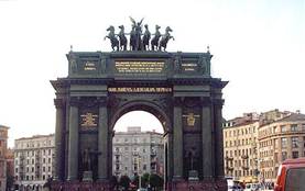 нем помещены фигуры «Славы» и «Победы» в колеснице, которую мчат кони. На обеих сторонах Ворот, в нишах, поставлено по две бронзовых статуи воинов в старинном русском вооружении, и над ними высечены названия 18 гвардейских полков. На аттике (стенке над карнизом, предназначаемой для надписей и барельефов) надпись бронзовыми буквами: «Победоносной российской Императорской гвардии признательное отечество в 18 день августа 1834 г.», а над аркой: «Воздвигнут повелением Императора Александра I». С внутренней стороны ворот надпись: «Сооружены значительным денежным соучастием начальствовавшего гвардейским корпусом генерала Уварова». Построены Ворота архитектором Стасовым; модели исполнены Демут-Малиновским и другими художниками. Рядом с аркой расположилась застава, через которую обязательно должны были пройти путники, направлявшиеся в столицу. По соседству с Нарвскими воротами возвышается здание Дворца культуры имени А.М. Горького (возведено в 1925-27 гг. ). Архитекторы – А.И. Гегелло, Д.Л. Кричевский, инженер – В.Ф. Райлян. Дворец – один из первенцев советской архитектуры – получил международное признание: в 1937 году на всемирной выставке в Парже архитектору А.И. Гегелло был присужден почётный диплом «Гран-при». На территории зелёного массива, который занимает территорию более 25 гектаров, ограниченную с запада рекой Екатерингофкой и Гутуевским островом в самом начале XVIII века по велению Петра I был создан пригородный дворцово-парковый ансамбль, построенный императором своей жене Екатерине и потому названный Екатерингофом. Многочисленные некогда сооружения и павильоны Екатерингофского парка исчезли ещё в XIX веке. Сам парк был запущен, а вновь благоустроен лишь после революции. В советские времена Екатерингоф назывался парком имени 30-летия ВЛКС. Сейчас парку было возвращено историческое название. Екатерингофский парк является одним из крупнейших в юго-западной части города. На центральной алее парка в начале 1956 года был установлен монумент, посвященный героям «Молодой гвардии». Памятник создали скульпторы В.И. Агибалов, В.И. Мухин, В.Х. Федченко и архитектор В.Д. Кирхоглани.