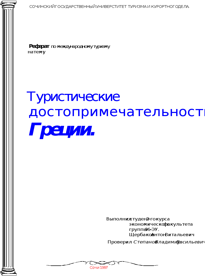 Реферат: Туристические достопримечательности ГрецииРеферат: Туристические достопримечательности Греции