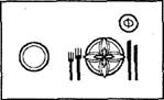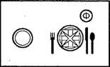 Рис.2 Сервировка обеденного стола Для обслуживания в вечернее время по меню заказных блюд дополнительно получают посуду и приборы. Столы предварительно сервируют пирожковыми и закусочными тарелками, установленными на мелкие столовые, закусочными и столовыми приборами (без ложки), салфетками, фужерами, приборами для специй, вазочками с цветами (рис.3).