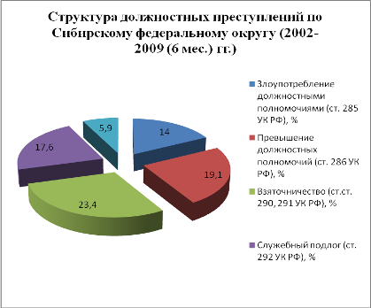 Как видно за указанные периоды в основном наблюдается положительный прирост данных преступлений. Практически аналогичная картина и по Сибирскому федеральному округу. Таблица 3 Динамика должностных преступлений по Сибирскому федеральному округу