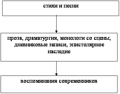 Дипломная работа: Лингвистические особенности метапоэтики художественных текстов В.С. ВысоцкогоДипломная работа: Лингвистические особенности метапоэтики художественных текстов В.С. ВысоцкогоСодержание Введение Глава 1. Теоретические основы метапоэтики В.С. Высоцкого 1.1 Метапоэтика в современной филологии и лингвистике 1.2 Структура метапоэтического текста В.С. Высоцкого 1.3 Принципы исследования метапоэтики В.С. Высоцкого Выводы Глава 2. Лингвистический аспект метапоэтики В.С. Высоцкого 2.1 Метапоэтика В.С. Высоцкого по данным дневника и эпистолярия 2.2 Совмещение поэтического и прозаического текста в метапоэтике В.С. Высоцкого 2.3 Игровое начало и синтетизм метапоэтики В.С. Высоцкого Выводы Заключение Библиографический список Введение метапоэтика высоцкий лингвистический Современный этап развития лингвистики характеризуется антропоцентрической направленностью, стремлением к постижению взаимодействия языка и личности. В связи с чем, изучение метапоэтики является одной из наиболее актуальных проблем филологической науки. А поскольку понятие «метапоэтика» является синкретичным для лингвистики, семиотики и литературоведения, остро стоит вопрос о ее лингвистической составляющей и определении. Для нашего исследования основополагающим является определение метапоэтики, предложенное К.Э.Штайн, согласно которому «метапоэтика — это поэтика по данным метапоэтического текста, или код автора, имплицированный или эксплицированный в текстах о художественных текстах, «сильная» гетерогенная система систем, включающая частные метапоэтики, характеризующаяся антиномичным соотношением научных, философских и художественных посылок; объект ее исследования — словесное творчество, конкретная цель — работа над материалом, языком, выявление приемов, раскрытие тайны мастерства; характеризуется объективностью, достоверностью, представляет собой сложную, исторически развивающуюся систему, являющуюся открытой, нелинейной, динамичной, постоянно взаимодействующей с разными областями знания. Одна из основных ее черт — энциклопедизм как проявление энциклопедизма личности художника, создающего плотный сущностный воображаемый мир в своих произведениях» [Штайн, 2006:9]. Актуальность исследования. Исследование метапоэтики художественных текстов автора представляется важнейшей задачей современной лингвистической науки, поскольку осознается роль обращения поэтов и писателей к рефлексии относительно своих произведений, а также к репрезентации авторского «я» в произведении. В связи с чем, актуальным на сегодняшний день является изучение лингвистических особенностей частных метапоэтик, в том числе и изучение метапоэтики В.С.Высоцкого, уделявшего в своих текстах большое внимание своему творчеству, осознавая себя не только как поэта, но и как актера. Его метапоэтика включает в себя тексты различных жанров, ее основной особенностью является то, что она рождалась в спонтанном диалоге со зрителями на публичных концертах. Поэт, рассказывая о своей работе, комментируя некоторые песни, каждый раз вступал в особый диалог с аудиторией, а основные тенденции творчества, которые были достаточно рано сформулированы, развивались от концерта к концерту, насыщались все новым и новым содержанием, обогащались неповторимыми интонациями. Данна
