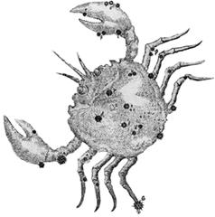 В названии звезд, отмечающих головы Близнецов, отразились элементы греческой мифологии – Кастор и Поллукс – герои-близнецы, сыновья Зевса и Леды, совершившие ряд подвигов. Египтяне дали этому созвездию свое толкование. Иероглифически изображается стоящая женщина, осененная звездой Поллукс. Мужчина в противоположности ей идет. Наж его головой звезда Кастор, левая рука его активно вынесена вперед. Правая рука соединена с рукой женщины, что символически указывает на гармоническое соединение этих двух начал: женской потенциальной энергии и мужской – реализующей. В этом созвездии две яркие звезды находятся очень близко одна от другой. Свое название они получили в честь аргонавтов Диоскуров - Кастора и Поллукса - близнецов, сыновей Зевса, самого могущественного из олимпийских богов, и Леды, легкомысленной земной красавицы, братьев Елены прекрасной – виновницы Троянской войны. Кастор славился как искусный возничий, а Поллукс как непревзойденный кулачный боец. Они участвовали в походе аргонавтов и калидонской охоте. Но однажды Диоскуры не поделили добычу со своими двоюродными братьями, великанами Идасом и Линкеем. В битве с ними братья были сильно изранены. И когда Кастор умер, бессмертный Поллукс не захотел расстаться с братом и попросил Зевса не разлучать их. С тех пор по воле Зевса братья полгода проводят в царстве мрачного Аида, а полгода - на Олимпе. Бывают периоды, когда в один и тот же день звезда Кастор видна на фоне утренней зари, а Поллукс - вечерней. Возможно, именно это обстоятельство и дало повод к рождению легенды о братьях, обитающих то в царстве мертвых, то на небе. Братья Диоскуры считались в древности покровителями моряков, попавших в бурю. А появление на мачтах кораблей перед грозой «Огней Святого Эльма» считалось посещением Близнецов их сестрой Еленой. Огни Святого Эльма - светящиеся разряды атмосферного электричества, наблюдаемые на остроконечных предметах (верхушках мачт, громоотвода и т.п.). Диоскуры почитались также как хранители государства и покровители гостеприимства. В Древнем Риме имела хождение серебряная монета "Диоскуры" с изображением звезд. КАК НА НЕБЕ ПОЯ ВИЛСЯ РАК 90 – 120° эклиптики. Едва заметное созвездие: самые яркие его звезды не превышают 4-й величины. Наиболее скромное из зодиакальных созвездий. Главная звезда – Акубенс. В этом созвездии находится звездное скопление Ясли. По имени знака созвездия назван тропик Рака. Свыше двух тысяч лет тому назад летнее солнцестояние пришлось на это созвездие. Солнце по-матерински изливало на Землю свет и тепло. Поэтому созвездие связано с именем богини Исиды, олицетворяющей идею материнства, вечной женственности и земной мудрости. Один из атрибутов богини – Луна, и созвездие Рака посвящено Луне, а его символ изображен в виде краба, напоминающего луну по форме. Иероглифически созвездие означает мудрость, которая проявляется в бескорыстной любви.