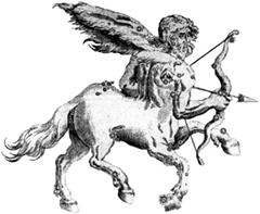По древнегреческой мифологии мудрейший из кентавров Хирон, сын бога Хроноса и богини Фемиды, создал и первую модель небесной сферы. При этом одно место в Зодиаке он отвел для себя. Но его опередил коварный кентавр Кротос, занявший обманом его место и ставший созвездием Стрельца. А самого Хирона бог Зевс превратил после смерти в созвездие Кентавра. Вот так и оказалось на небе целых два кентавра. Злобного Стрельца боится даже сам Скорпион, в которого тот целится из лука. Иногда можно встретить изображение Стрельца в виде кентавра с двумя лицами: одно обращено назад, другое - вперед. Этим он напоминает римского бога Януса. С именем Януса связан первый месяц года - январь. А Солнце находится в Стрельце зимой. Таким образом, созвездие как бы символизирует конец старого и начало нового года, причем одно его лицо смотрит в прошлое, а другое - в будущее. В направлении созвездия Стрельца находится центр нашей Галактики. Если посмотреть на карту звездного неба, то Млечный Путь проходит и через созвездие Стрельца. Как и Скорпион, Стрелец очень богат красивыми туманностями. Пожалуй, это созвездие больше любого другого заслуживает название «небесная сокровищница». Многие звездные скопления и туманности поразительно красивы. КУДА СКАЧЕТ КОЗЕРОГ?