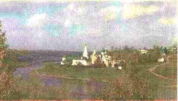 Старица Заканчивался ноябрь. Тихая солнечная осень сменилась мягкой снежной зимой. В Малинниках только и разговоров было, что о скорой поездке в Старицу, где Осипова с семьей собирались провести рождественские праздники. Приглашали и Пушкина, но он поехал в Москву, чтобы повидать своих друзей, по которым скучал все это время. Однако уже в начале января, поэт покинул столицу и через Тверь поехал в Старицу. Древний этот городок, обычно тихий, шумел в ту пору балами. Здесь стоял уланский полк, помещики съезжались со всей округи с дочерьми: где же искать женихов, как не среди бравых улан! Не зря хвалили Пушкину Старицу: она была и впрямь хороша — и древностью корня своего, и событиями историческими, и строениями знатными — церквами, монастырями... Предание гласит, что первыми в эти места пришли в 1110 году два инока из Киево-Печерской лавры — Трифон и Никандр. Здесь, у Волги, поставили скромную часовню. От них и пошла Старица.